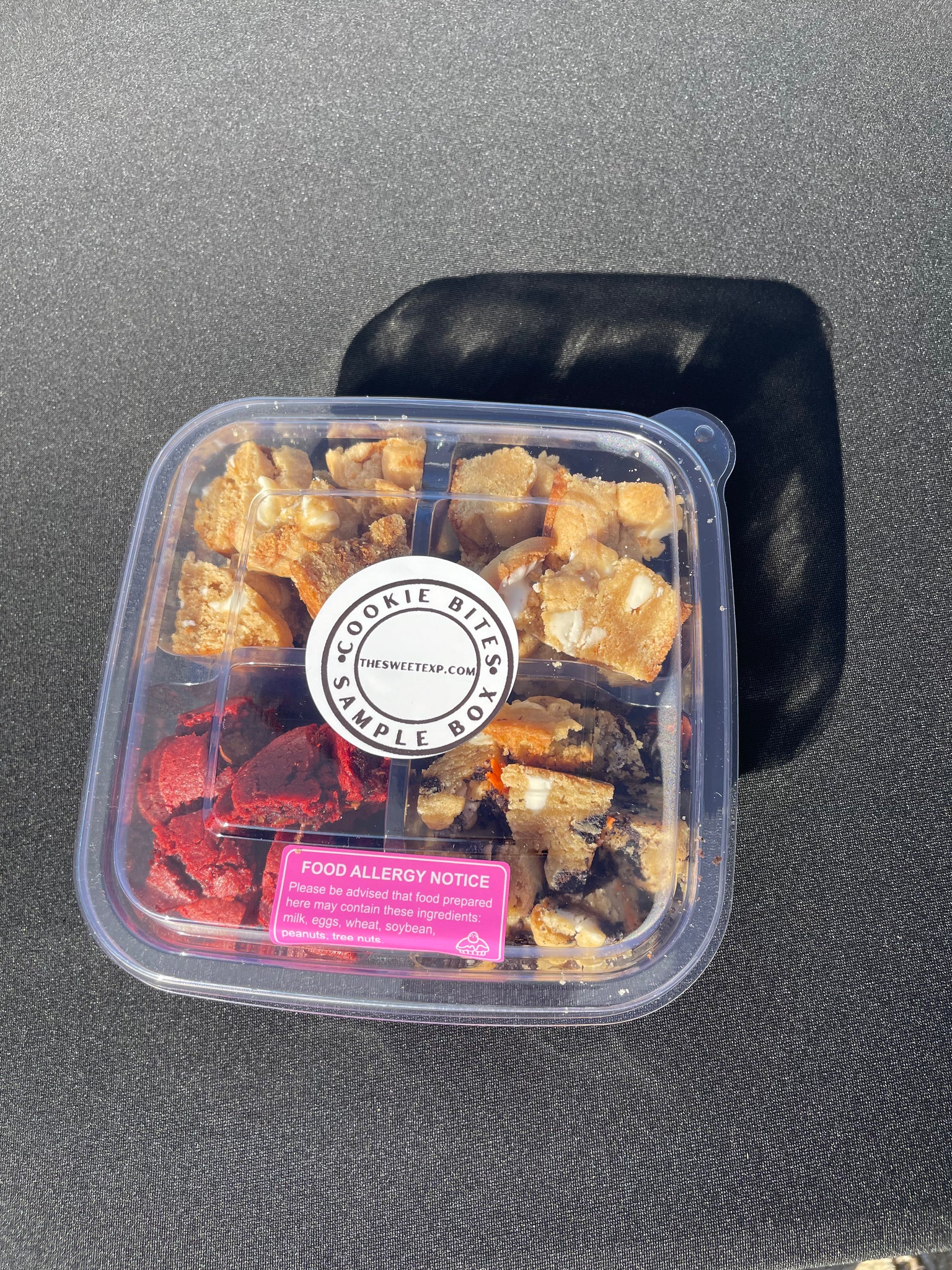 Try our Cookie Bites Sample Box and indulge in 4 of our top selling flavors: Red Velvet, Cookies and Cream, Biscoff, and Banana Pudding. 10.2 oz clear plastic container is packed with bite-sized cookies that are perfect for snacking or sharing. Treat yourself to a delicious assortment of flavors in one convenient box.